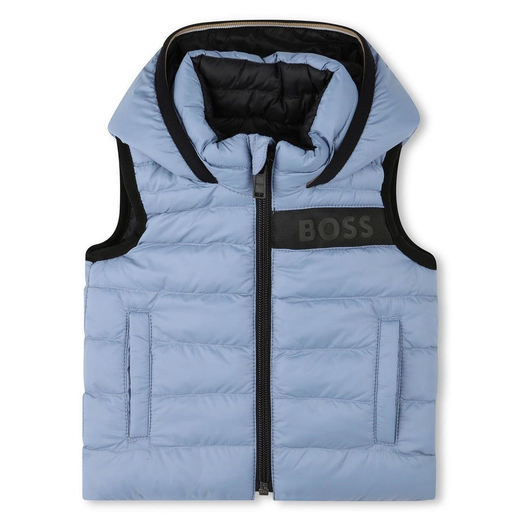 Special Delivery Royal Mail for next day from Mon - Thurs before 1PM £10.99BOSS TODDLER Reversible sleeveless down jacket in polyester, zip fastening, iconic band on the collar, invisible hood, one side with contrasting grosgrain band on the chest and printed logo, side pockets, iconic label on the back, the other side with side pockets and printed logo at chest. Wadding padding.