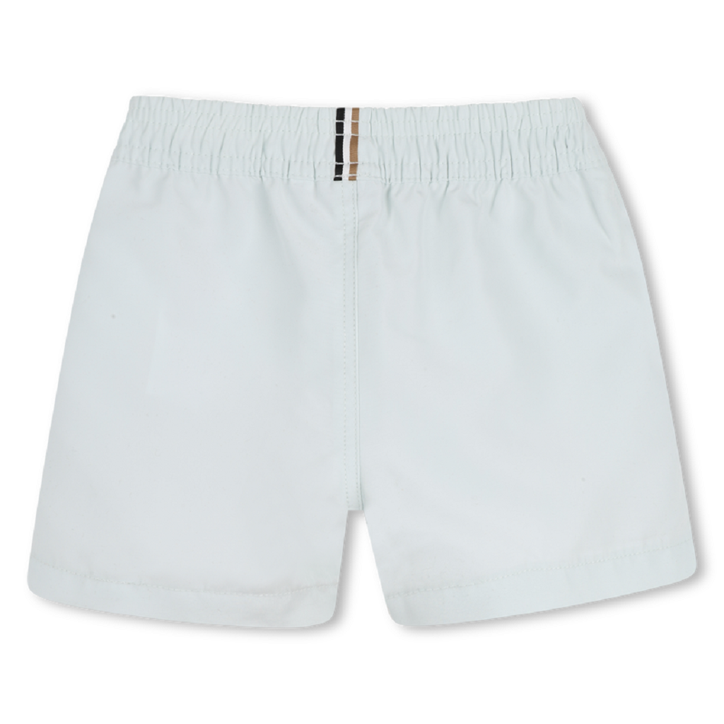 BOSS Baby Boys Short-sleeved T-shirt in 100% cotton jersey, snap closure at the shoulder, "BOSS" print on the front. Paired with BOSS Baby Boys swim shorts with elasticated waistband and drawcord. Large horizontal BOSS logo. Sprout Green