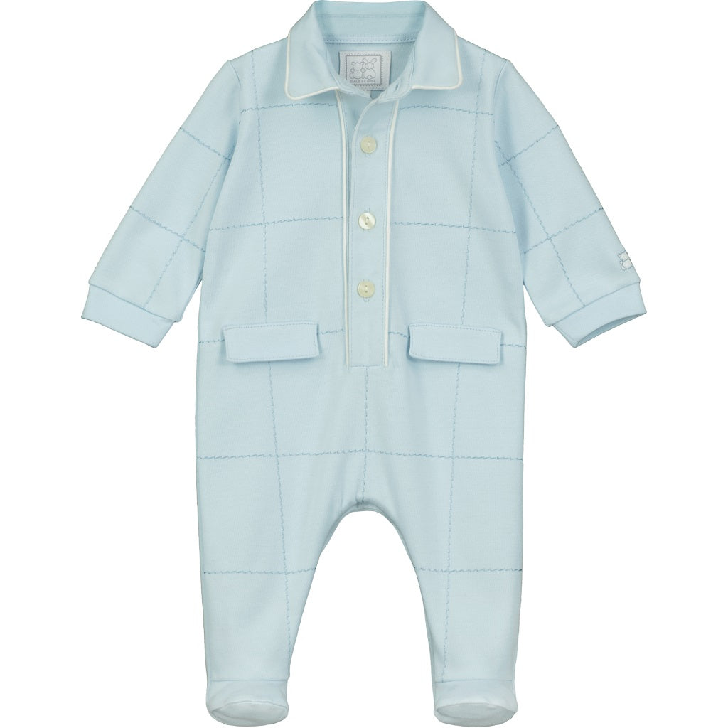 EMILE ET ROSE Baby Boys Edison is the perfect playdate outfit. In a shirt style and mock pockets, the main feature of this garment is large embroidered checks. The collar and front button openings give this practical garment a more grown up look, full leg opening for easy changing. Pale Blue