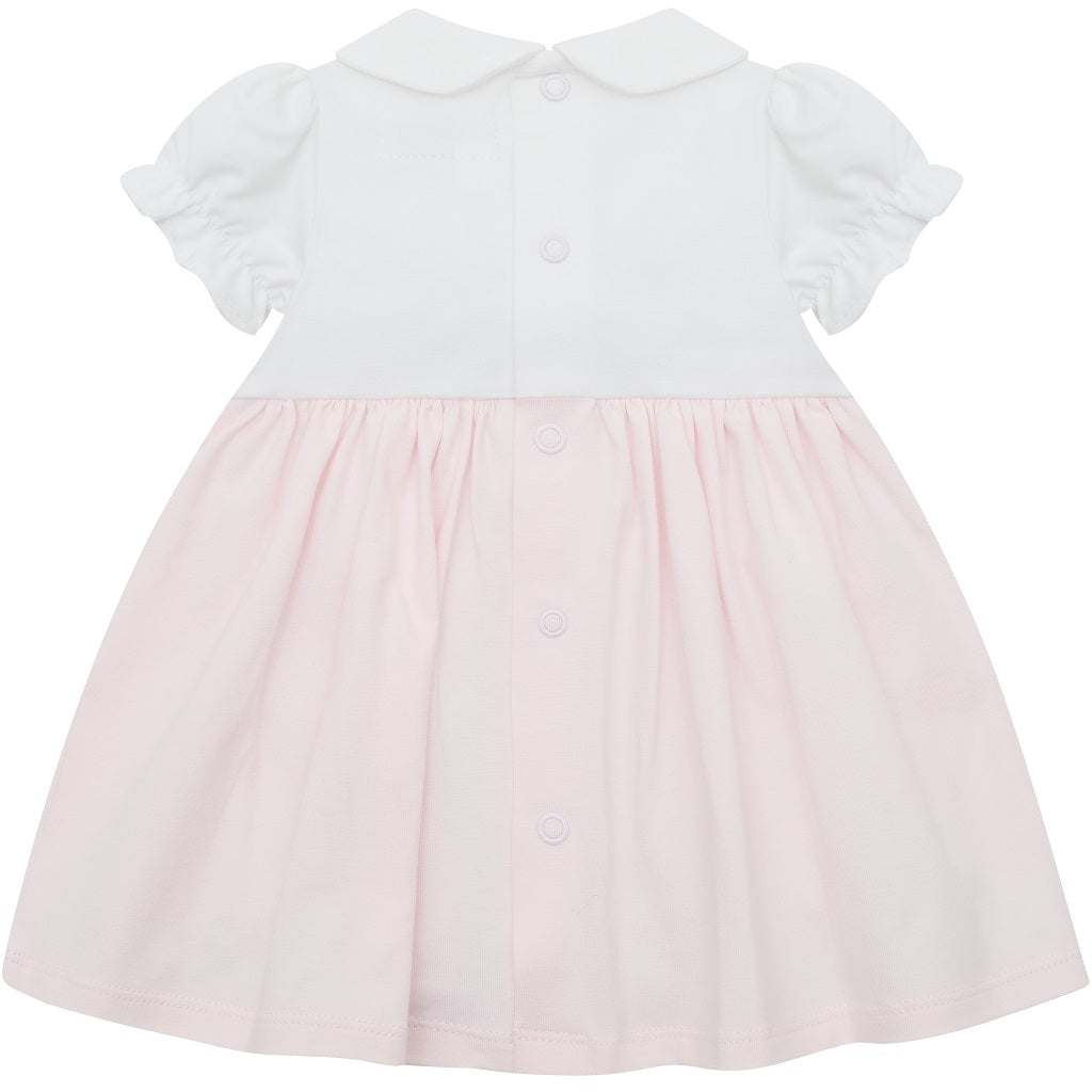 Special Delivery Royal Mail for next day from Mon - Thurs before 1PM £9.95 International Europe – £18.00EMILE ET ROSE LILAH The top half of this beautiful dress is white with alternate columns of gorgeous embroidery in shades of pink & grey and intricate lace running vertically from collar to waist. The pink waistband separates the white top from the full pink skirt. A rounded collar and puff sleeves complete the look of this perfect party piece. 95% Cotton 5% Elastane