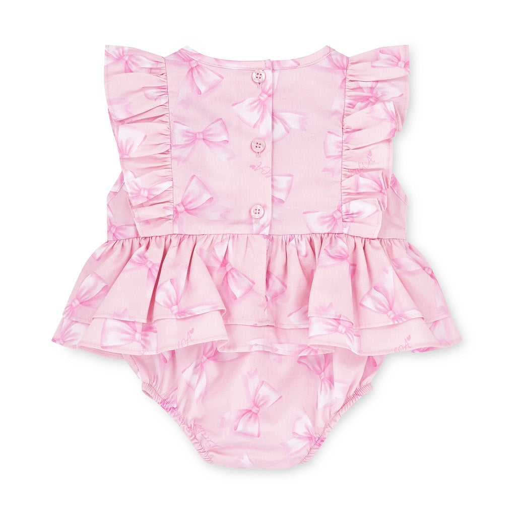 Special Delivery Royal Mail for next day from Mon - Thurs before 1PM £9.95 International Europe – £18.00LITTLE A Perfectly Pink. The Odessa romper is made with cute all over bow print poplin, finished with frill and bow details finished with diamante branding. Pink Blossom