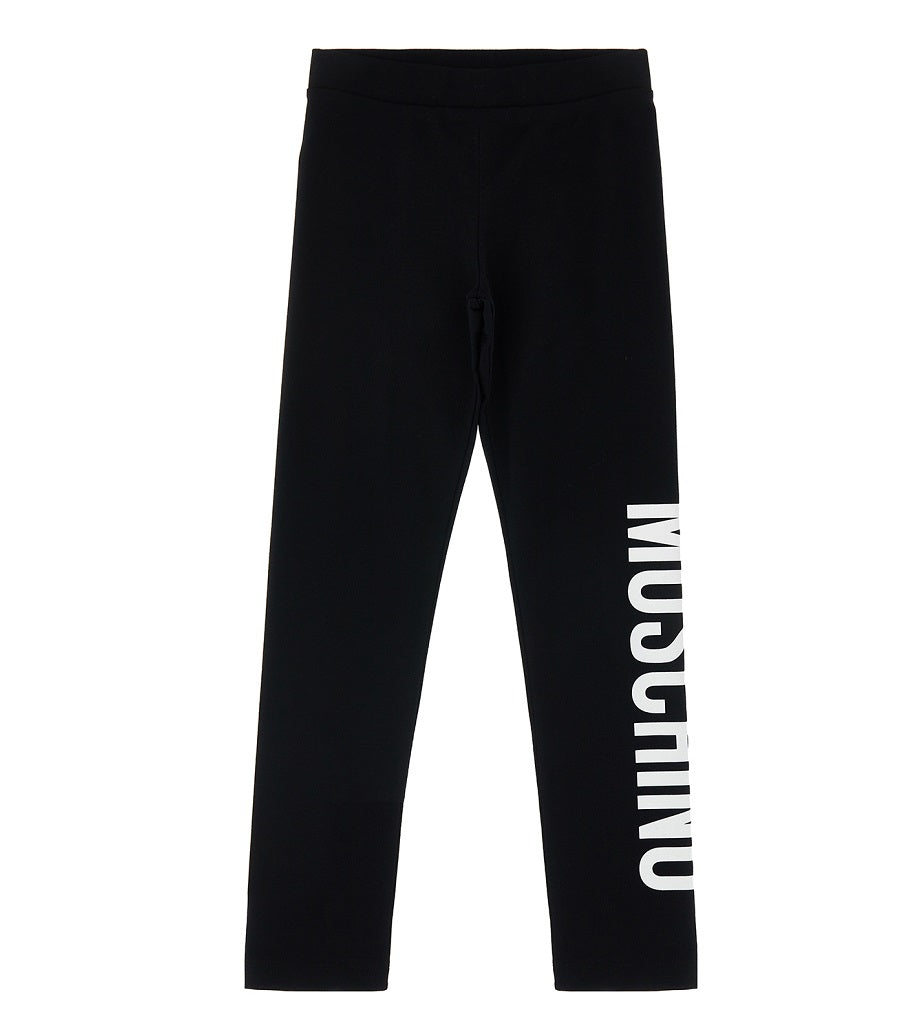 Special Delivery Royal Mail for next day from Mon - Thurs before 1PM £10.99Moschino Kids black leggings made from a soft and stretchy jersey cotton. Full length with a bold black logo print on one leg, elasticated waistband .