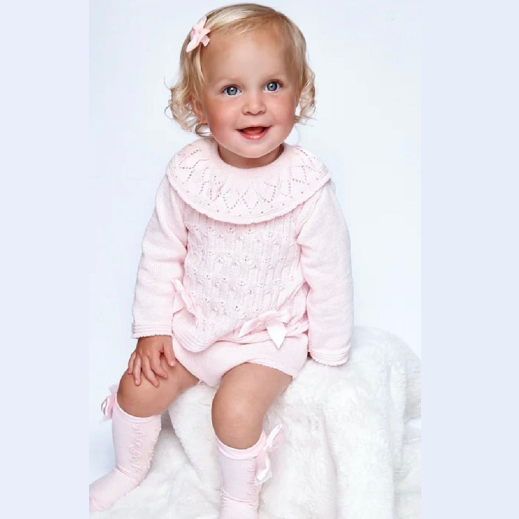 Special Delivery Royal Mail for next day from Mon - Thurs before 1PM £10.99The PEX Carmen Pants Suit Pink features a soft knit material and is adorned with bows and an oversized collar for a stylish touch.