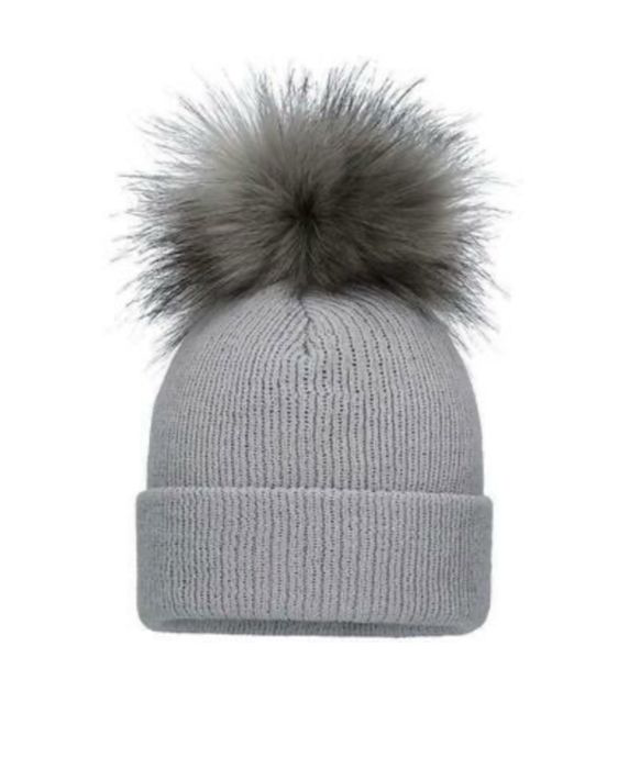 Special Delivery Royal Mail for next day from Mon - Thurs before 1PM £10.99Pom Pom Envy Baby Knit Single Hat with faux fur pom. Grey