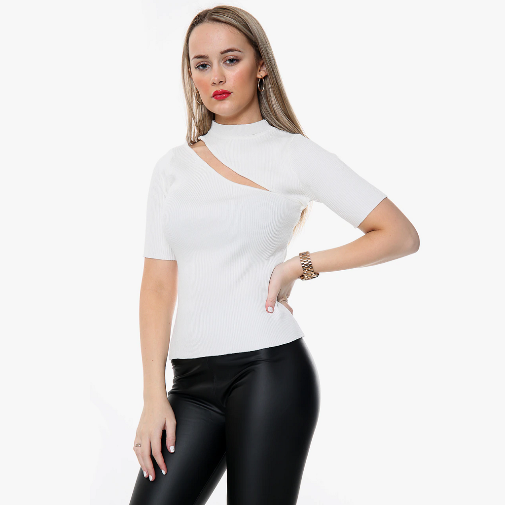 Special Delivery Royal Mail for next day from Mon - Thurs before 1PM £10.99Ladies Short Sleeved ribbed top, side split on shoulder, stretch material. White
