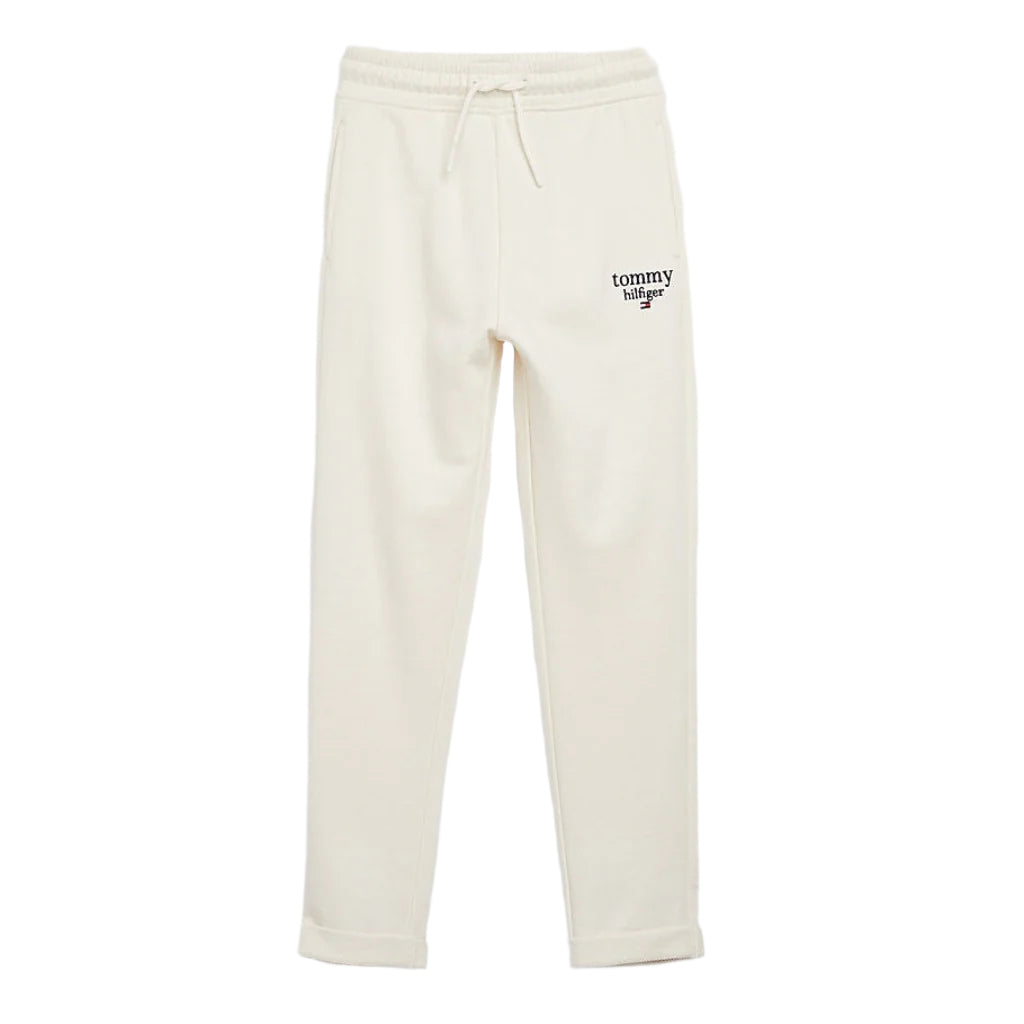 Special Delivery Royal Mail for next day from Mon - Thurs before 1PM £10.99Girls Junior Ivory Petal Graphic tapered joggers, soft lycra. Recycled cotton blend, elasticated drawstring waist, one back welt pocket. Tommy Hilfiger serif logo on leg. Tommy Hilfiger branding. Tommy Hilfiger flag embroidery at hip.